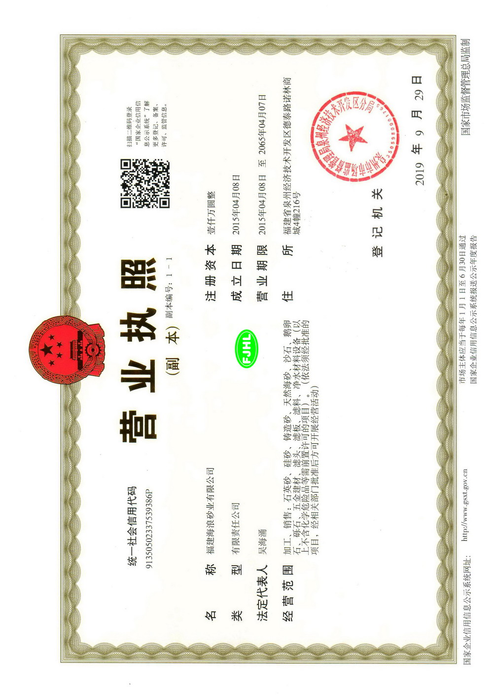 以上是文章 “【石英砂廠方營(yíng)業(yè)執(zhí)照】” 所有內(nèi)容,鏈接地址:http://www.jinlanlanying.cn/html/honor/2018060418.html